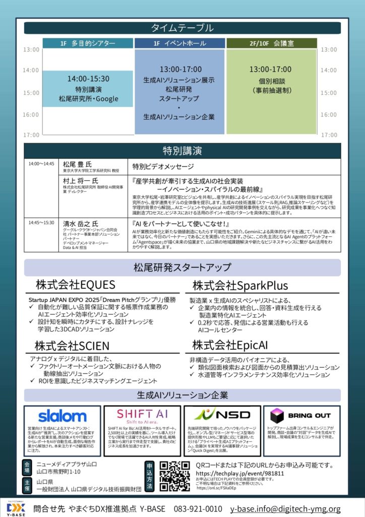 山口県では、県内における生成AIを活用した課題解決モデル事例の創出及び生成AIの導入支援を目的としたイベントを開催します。