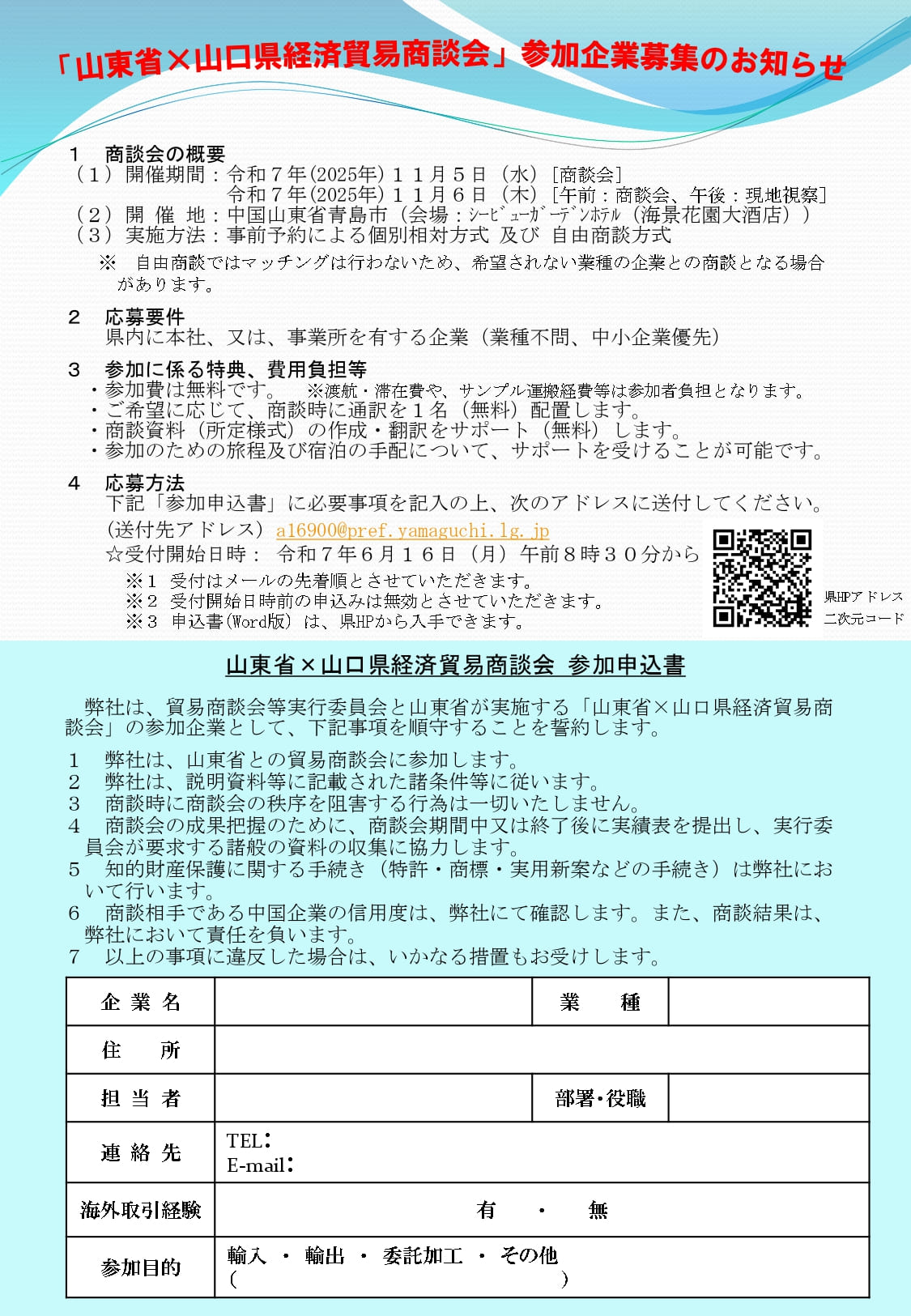 【R7参加企業募集】山東省×山口県経済貿易商談会(チラシ)(PDF)