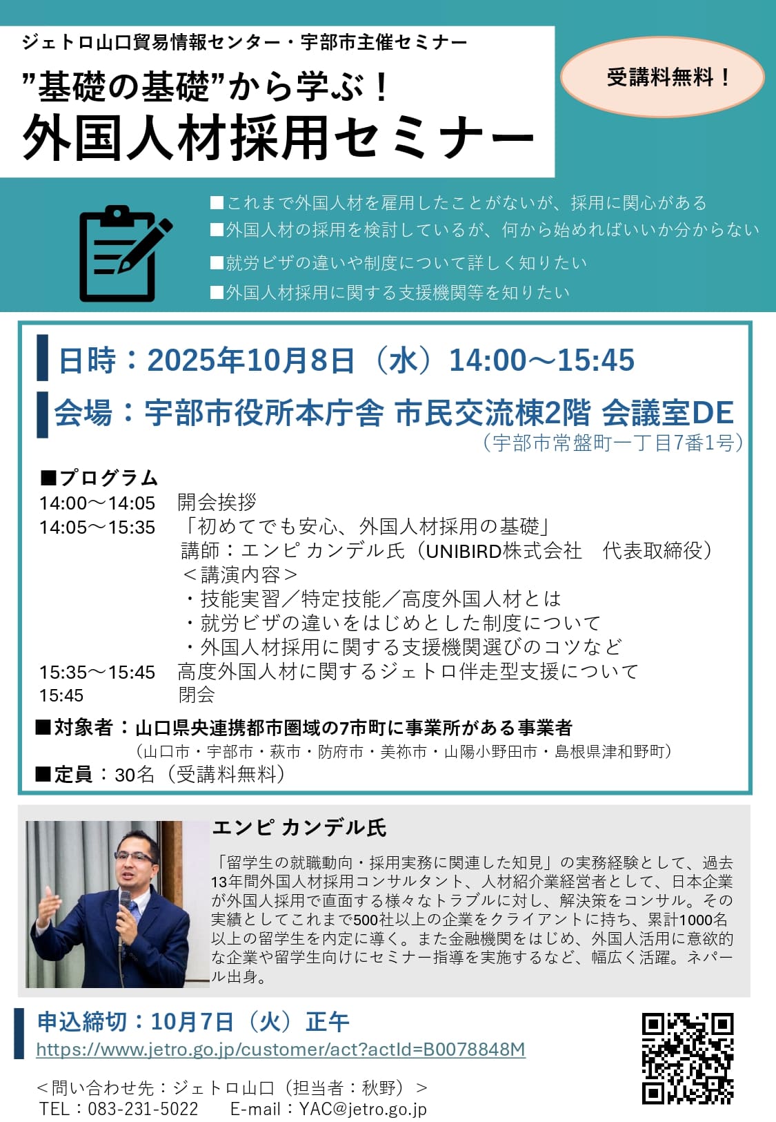・「初めてでも安心、外国人材採用の基礎」講師:UNIBIRD株式会社 代表取締役 エンピ・カンデル 氏